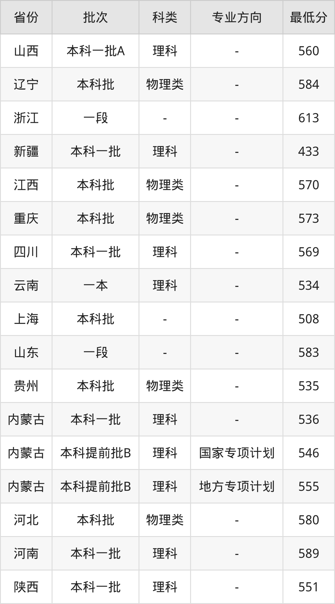 | 批次 | 科类 | 专业方向 | 最低分 | 位次 |