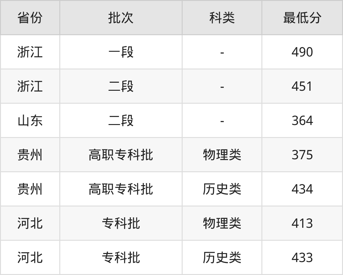 | 批次 | 最低分 | 位次 |
