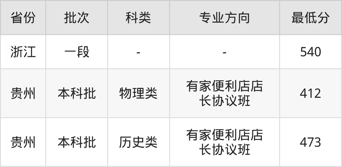 物理类412分(有家便利店店长协议班、位次135391名),历史类473分(有家便利店店长协议班、位次32718名)。