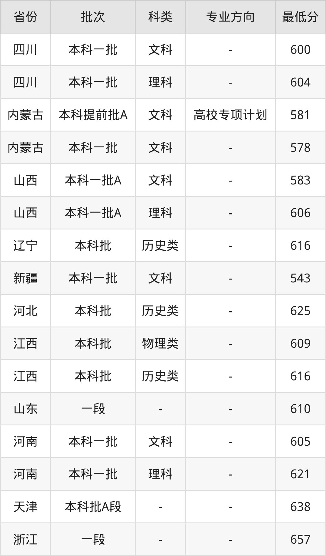 湖南大学行政管理专业录取分数线2024各省汇总显示,省外招生最低分为河南605分、四川600分、天津638分、浙江657分等。更多专业分数详情、选科要求、专业简介等均可在正文查阅。