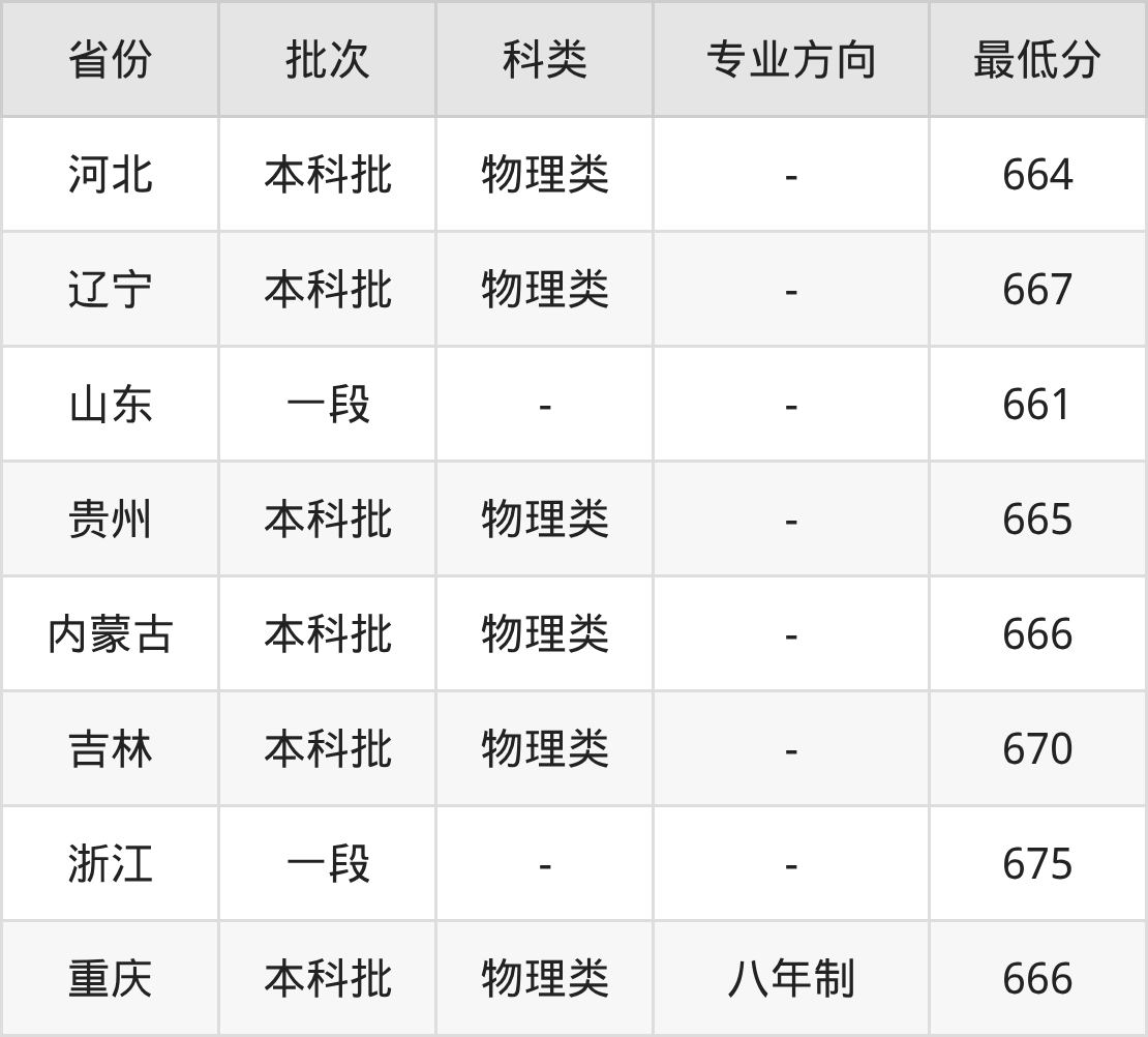 中南大学临床医学专业录取分数线2025各省汇总显示,省外招生最低分为吉林670分、浙江675分、山东661分、重庆666分等。更多专业分数详情、选科要求、专业简介等均可在正文查阅。