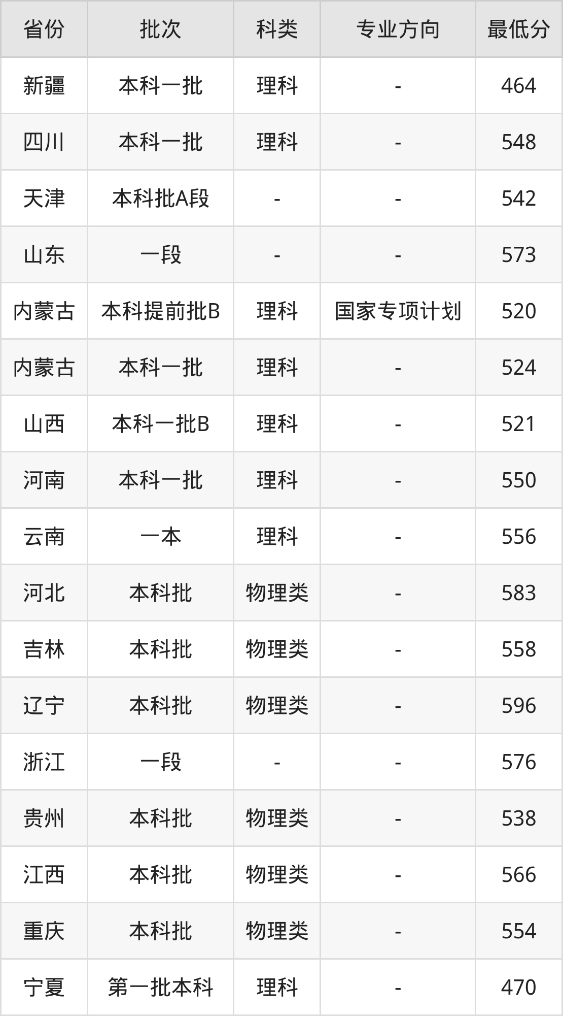 | 批次 | 最低分 | 位次 |