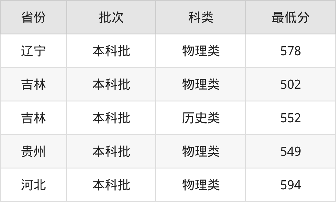 | 批次 | 科类 | 最低分 | 位次 |