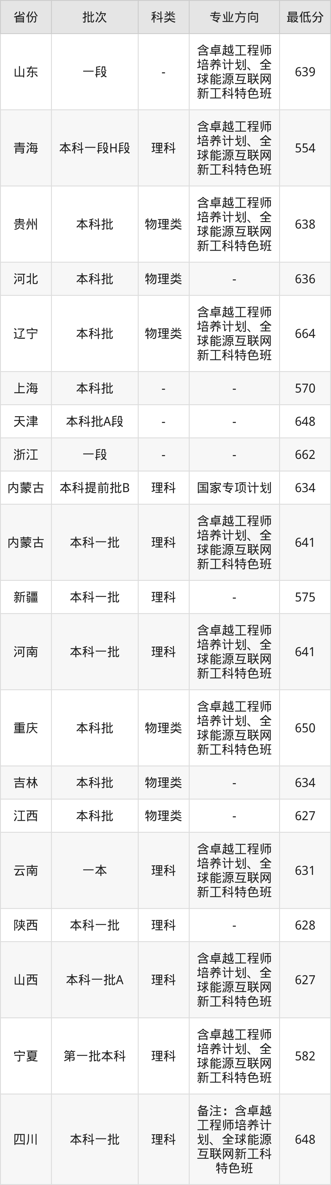 理科648分(备注:含卓越工程师培养计划、全球能源互联网新工科特色班、位次5211名);