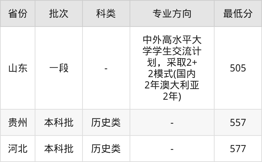 505分(中外高水平大学学生交流计划,采取2+2模式(国内2年澳大利亚2年)、位次175087名);