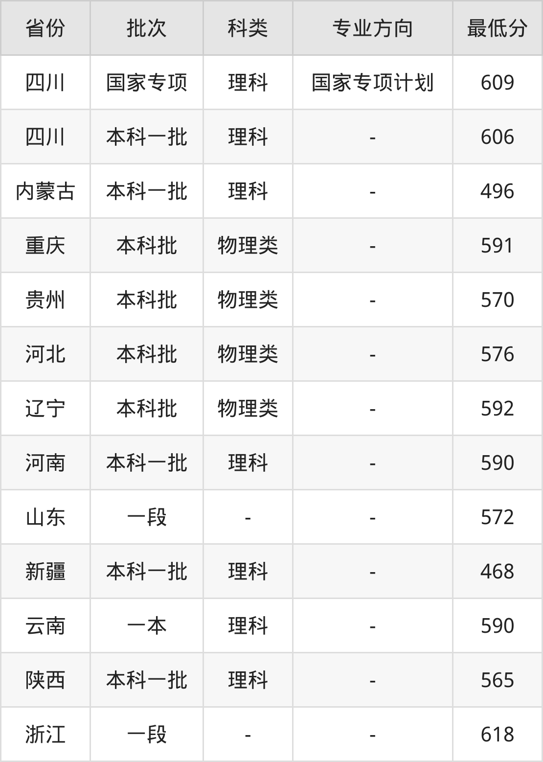 理科609分(国家专项计划、位次20827名),理科606分(位次22523名);