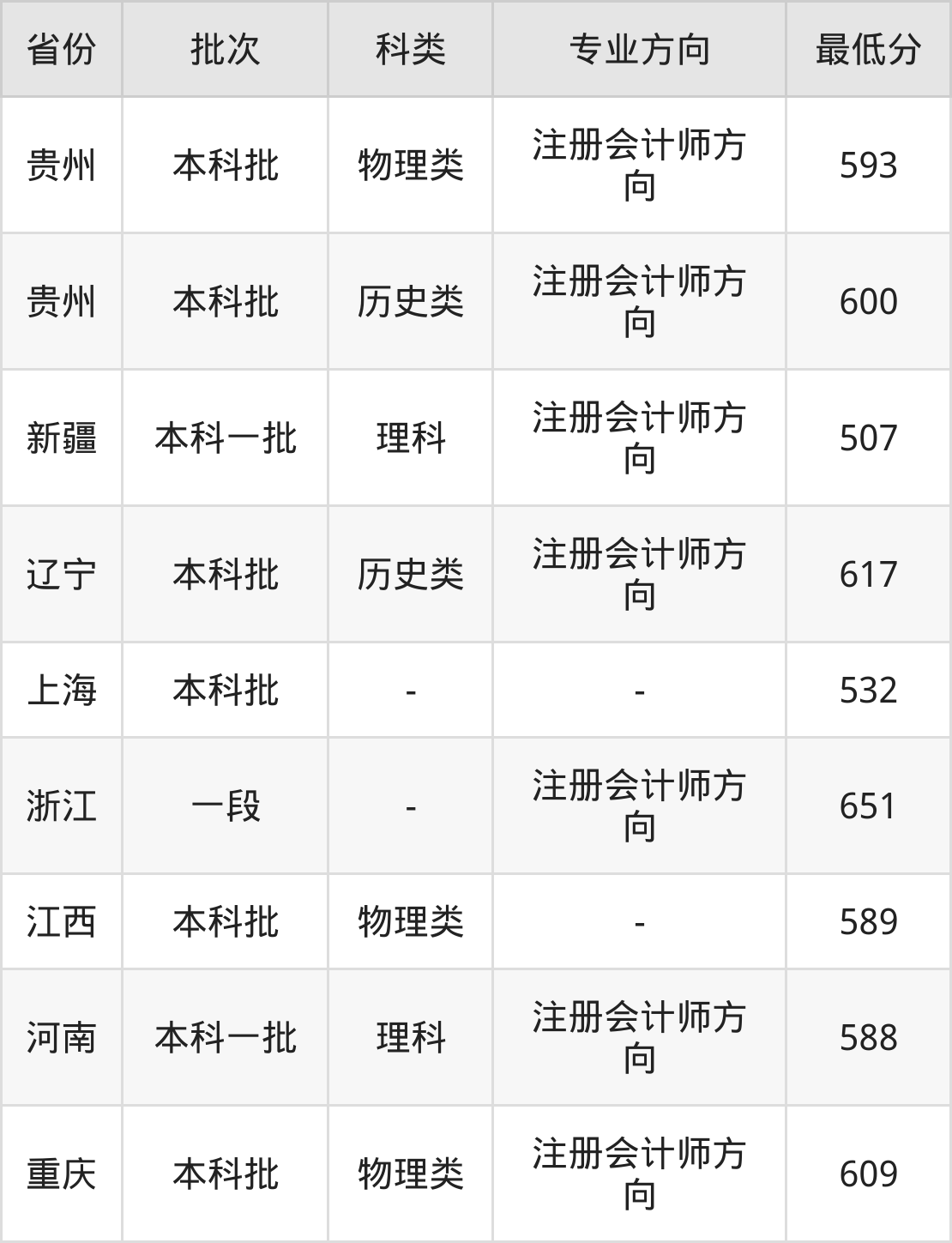 物理类593分(注册会计师方向、位次10592名),历史类600分(注册会计师方向、位次1776名);