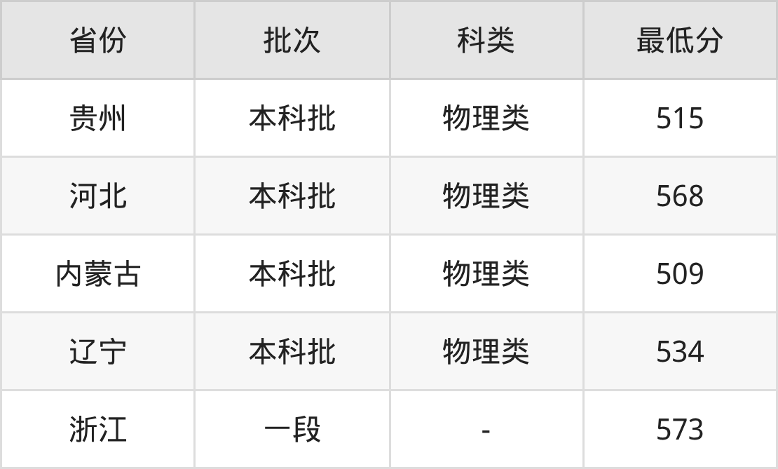 | 批次 | 最低分 | 位次 |