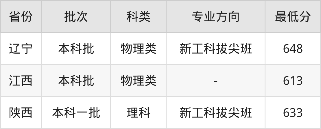| 本科批 | 物理类 | 新工科拔尖班 | 648 | 3880 |