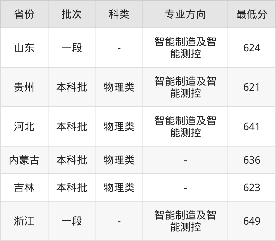 物理类641分(智能制造及智能测控、位次5573名);