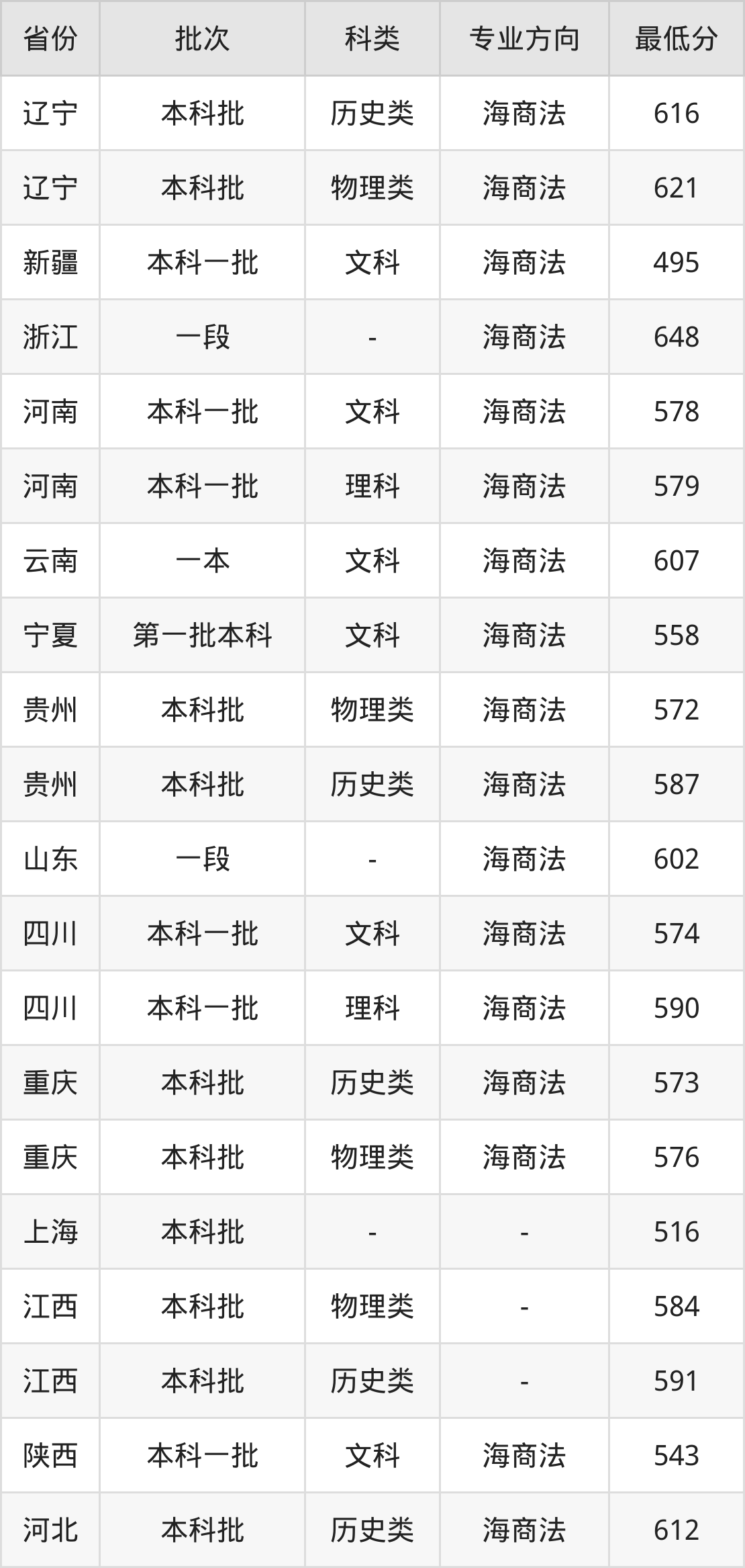 历史类573分(海商法、位次3482名),物理类576分(海商法、位次21845名);