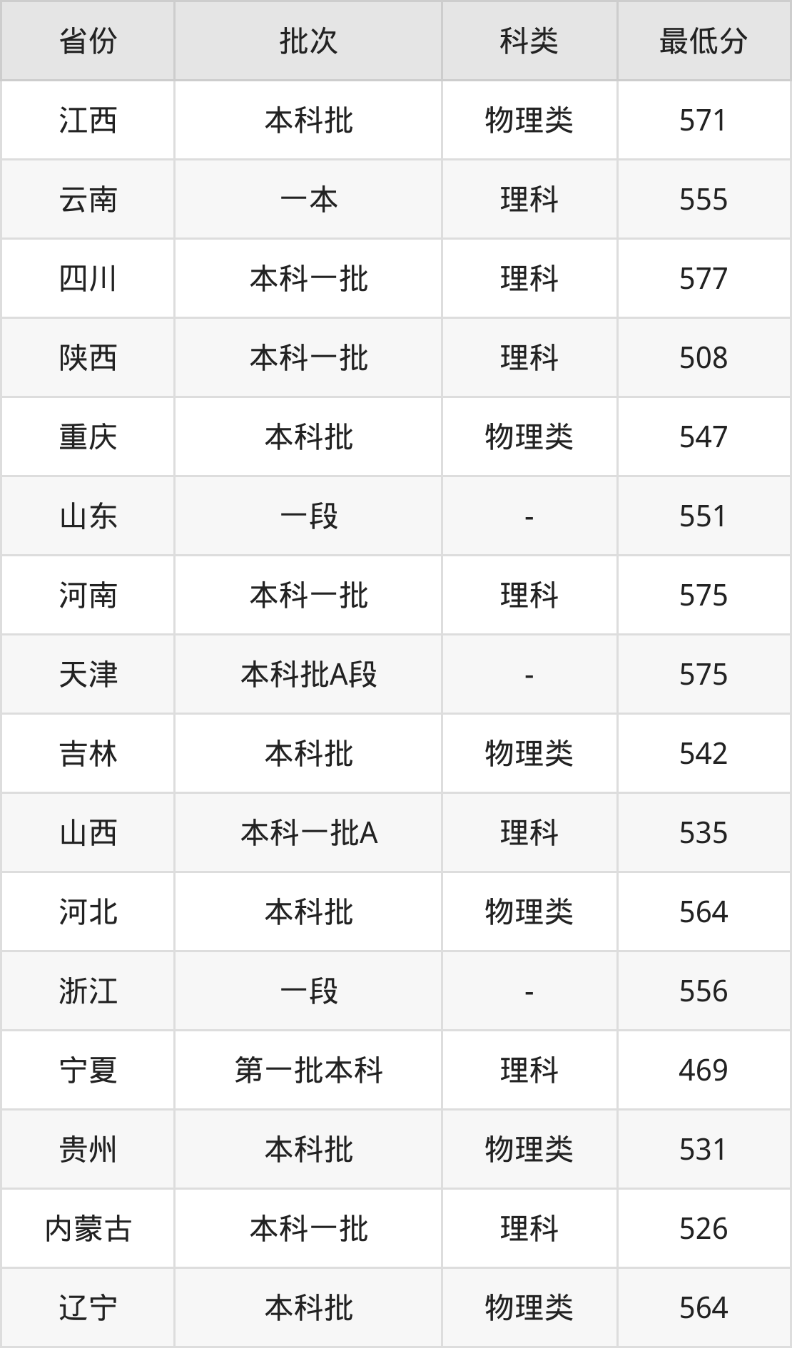 2024年中北大学材料成型及控制工程专业在省外招生分数线各不相同,具体如下: