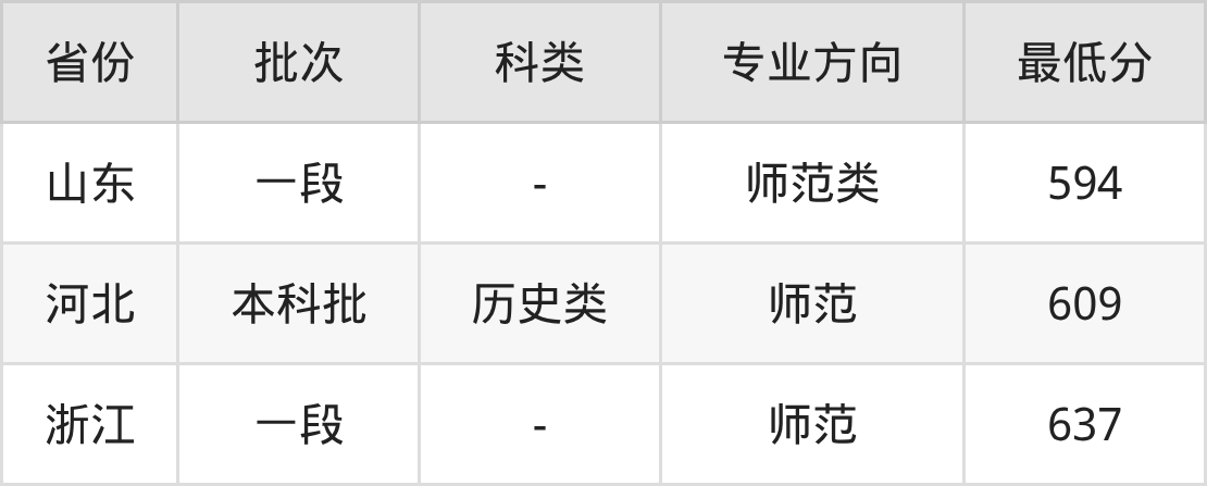 浙江师范大学思想政治教育专业录取分数线2025各省汇总显示,省内招生最低分为637分,省外招生最低分为山东594分、河北609分。更多专业分数详情、选科要求、专业简介等均可在正文查阅。