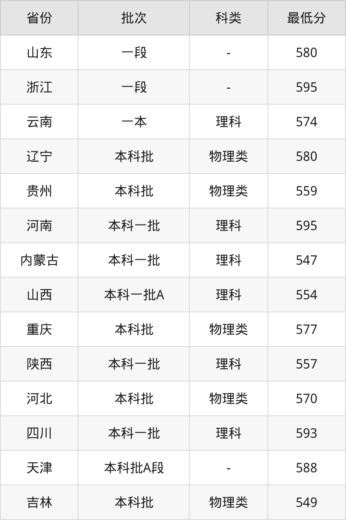 1、山西省(本科一批A)