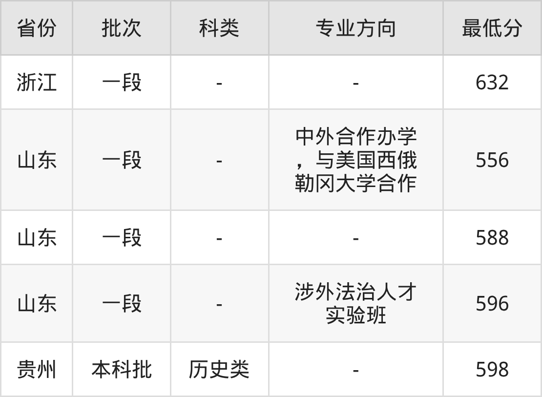 烟台大学法学专业录取分数线2025各省汇总显示,省内招生最低分为556分,省外招生最低分为浙江632分、贵州598分。更多专业分数详情、选科要求、专业简介等均可在正文查阅。