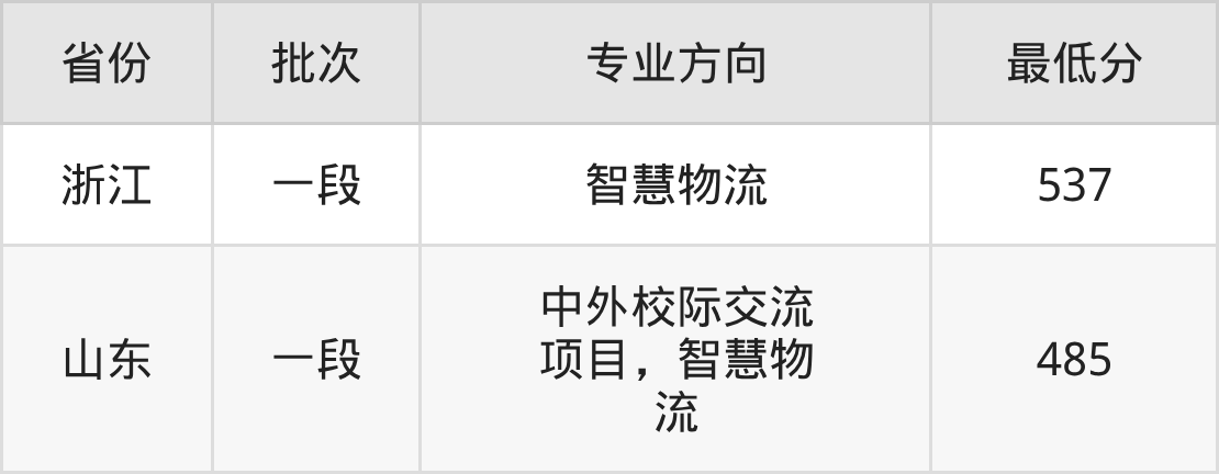 武汉工商学院物流管理专业录取分数线2025各省汇总显示,省外招生最低分为浙江537分、山东485分。更多专业分数详情、选科要求、专业简介等均可在正文查阅。