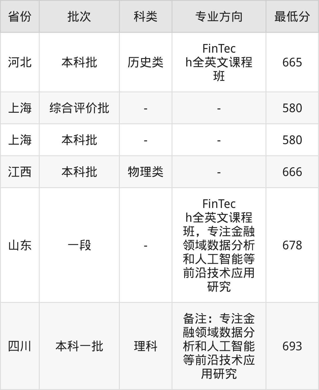 理科693分(备注:专注金融领域数据分析和人工智能等前沿技术应用研究、位次131名);