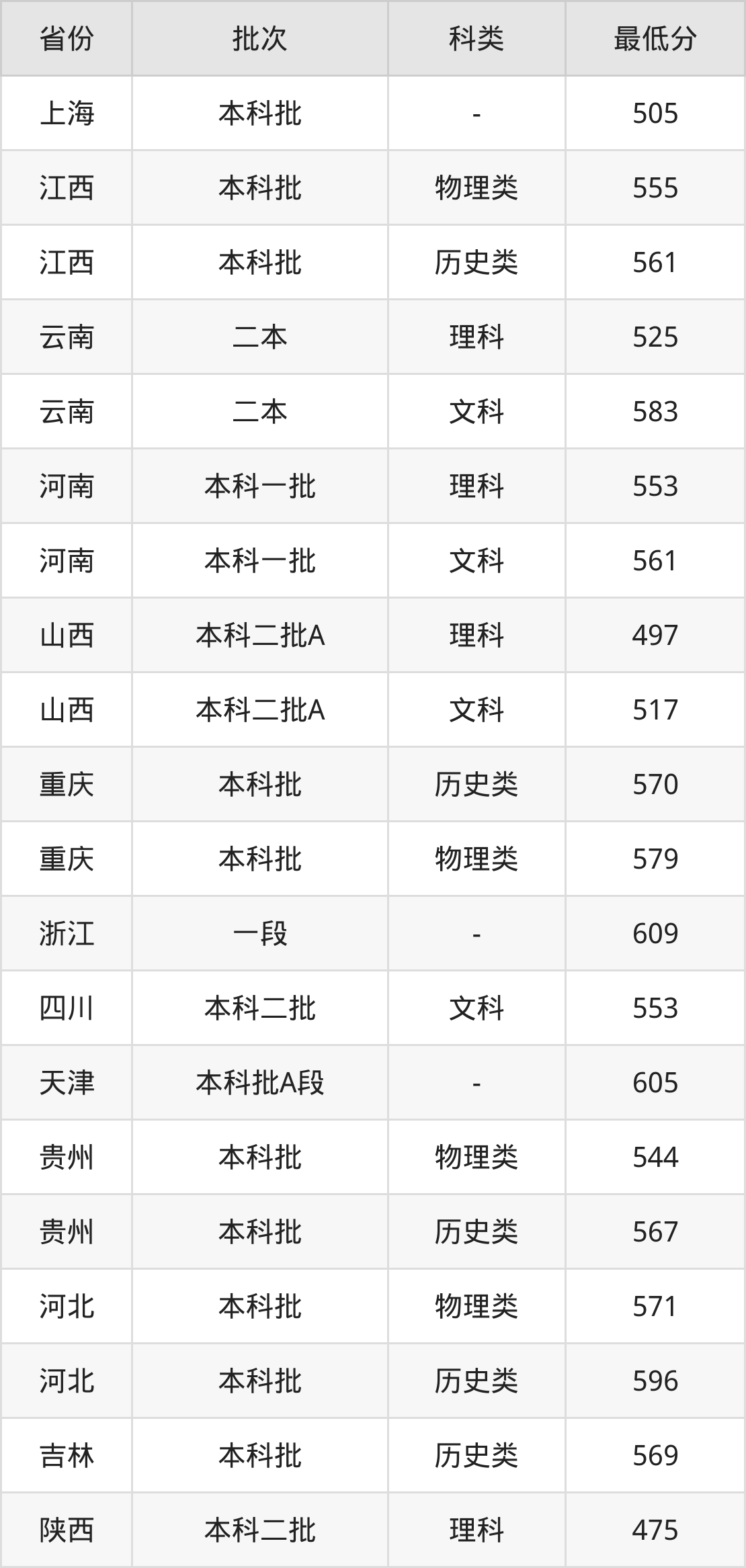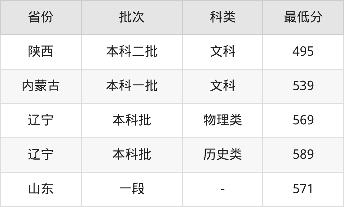 | 批次 | 最低分 | 位次 |