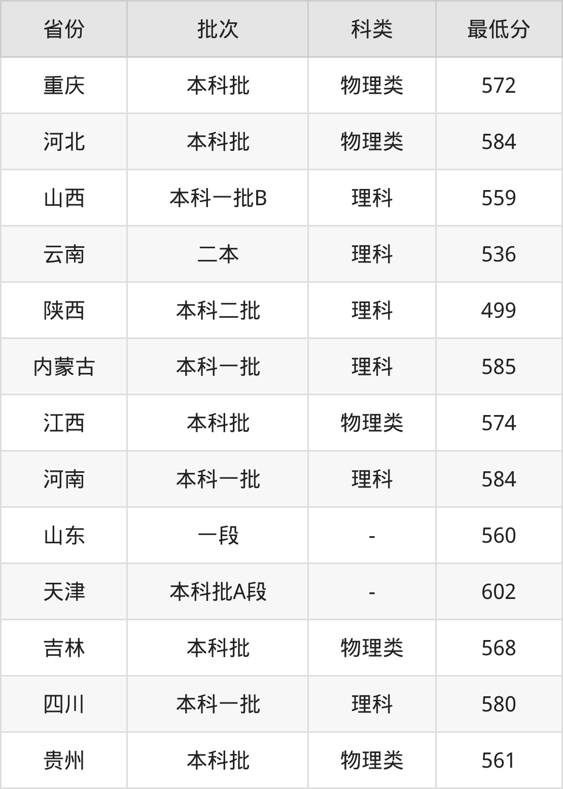 | 批次 | 最低分 | 位次 |