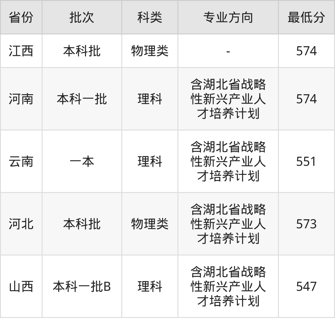 物理类573分(含湖北省战略性新兴产业人才培养计划、位次34252名);