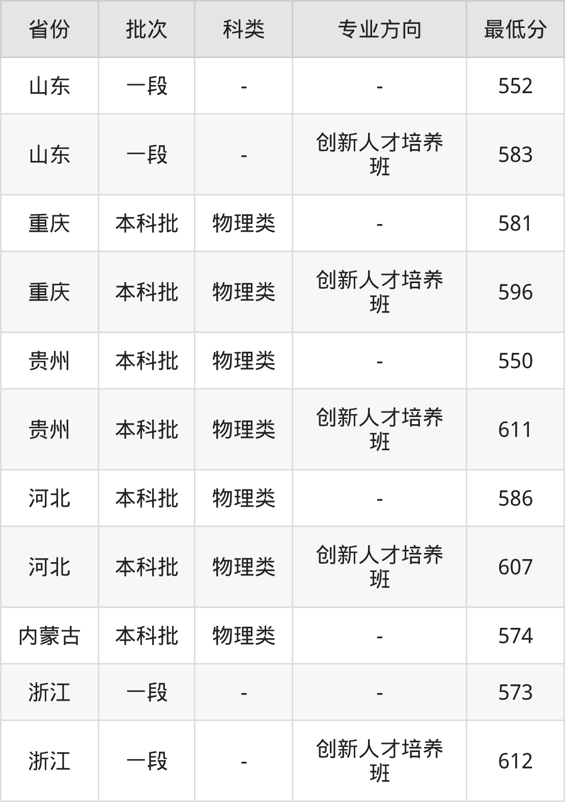 物理类581分(位次18260名),物理类596分(创新人才培养班、位次12962名);