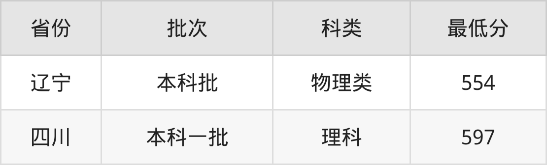 | 批次 | 科类 | 最低分 | 位次 |