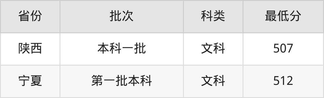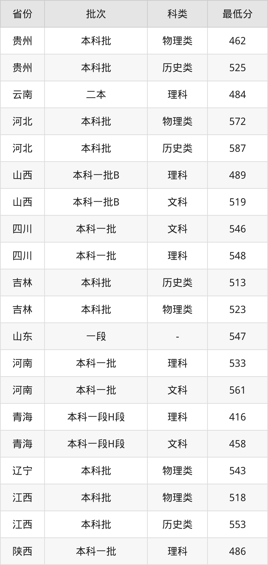 | 批次 | 科类 | 最低分 | 位次 |