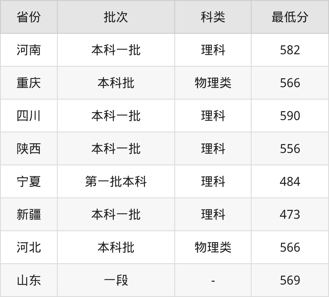 | 批次 | 科类 | 最低分 | 位次 |