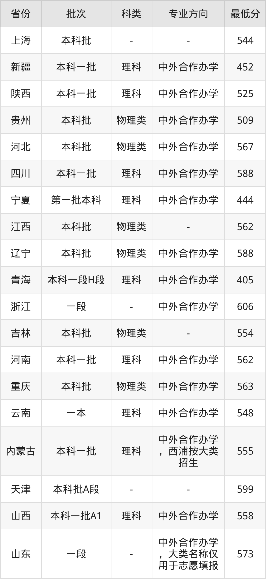 理科555分(中外合作办学,西浦按大类招生、位次10144名);
