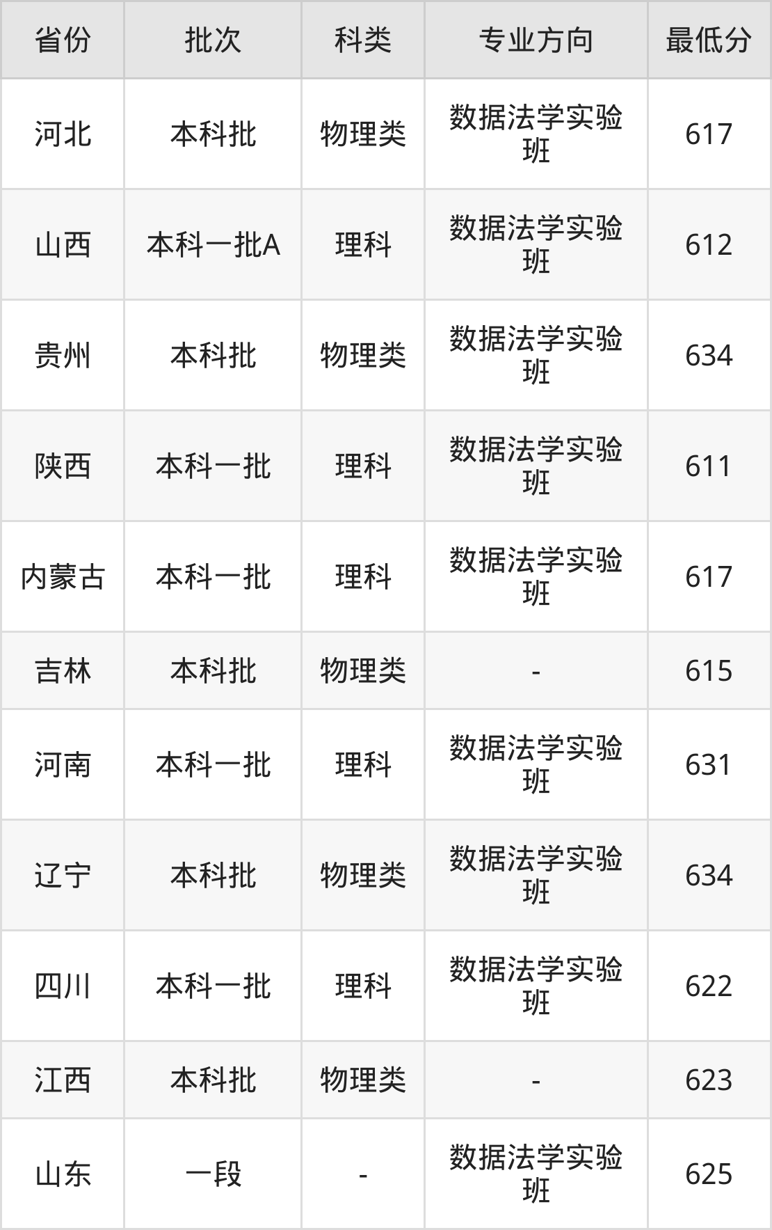 625分(数据法学实验班、位次9732名);