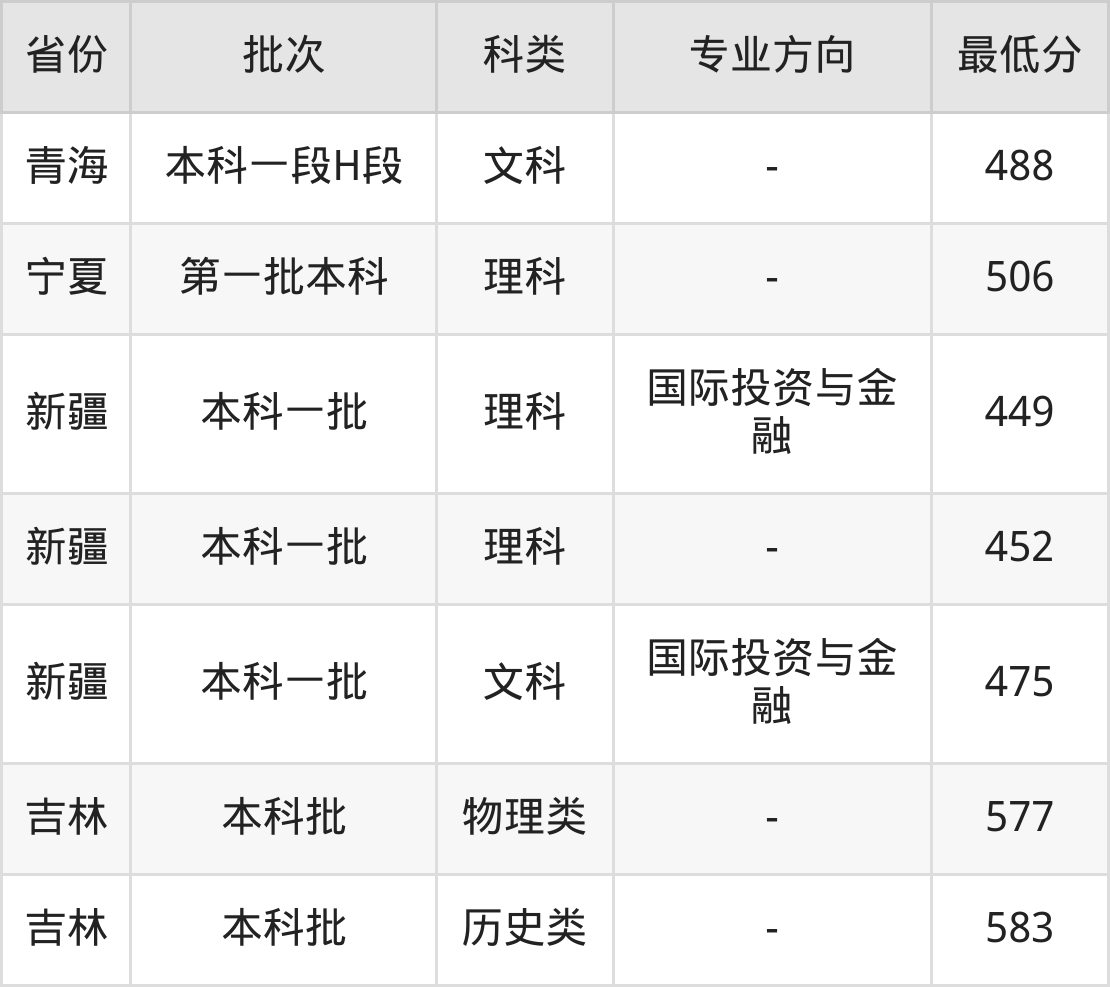 理科449分(国际投资与金融、位次9886名),理科452分(位次9576名),文科475分(国际投资与金融、位次1971名);