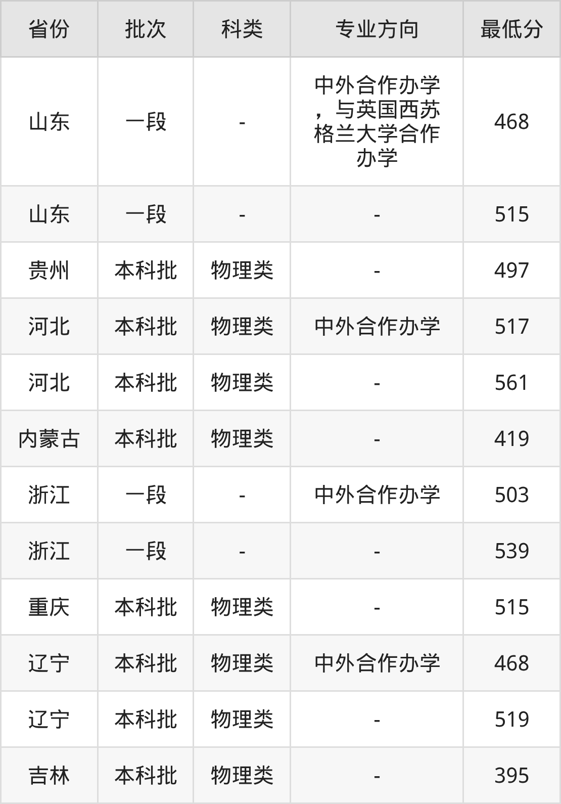 468分(中外合作办学,与英国西苏格兰大学合作办学、位次264808名),515分(位次151013名);