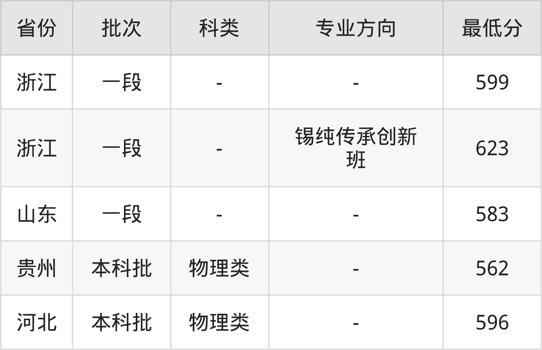 | 批次 | 专业方向 | 最低分 | 位次 |