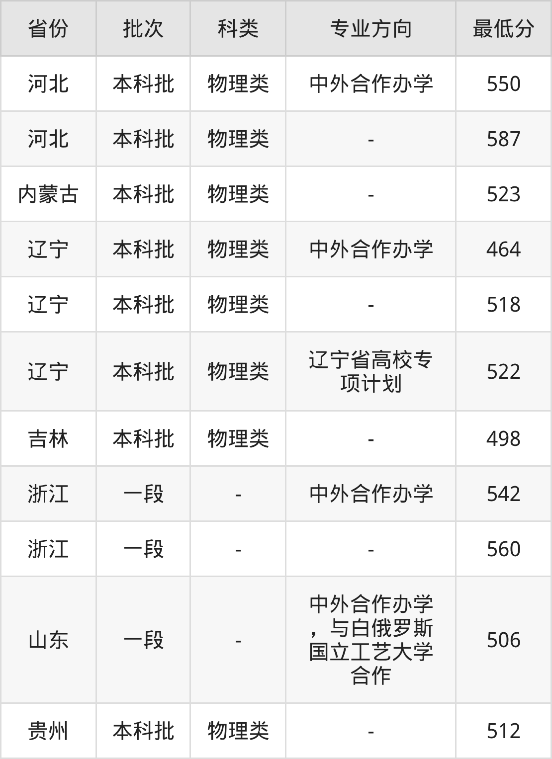 2025年大连工业大学机械工程专业在省外招生分数线各不相同,具体如下: