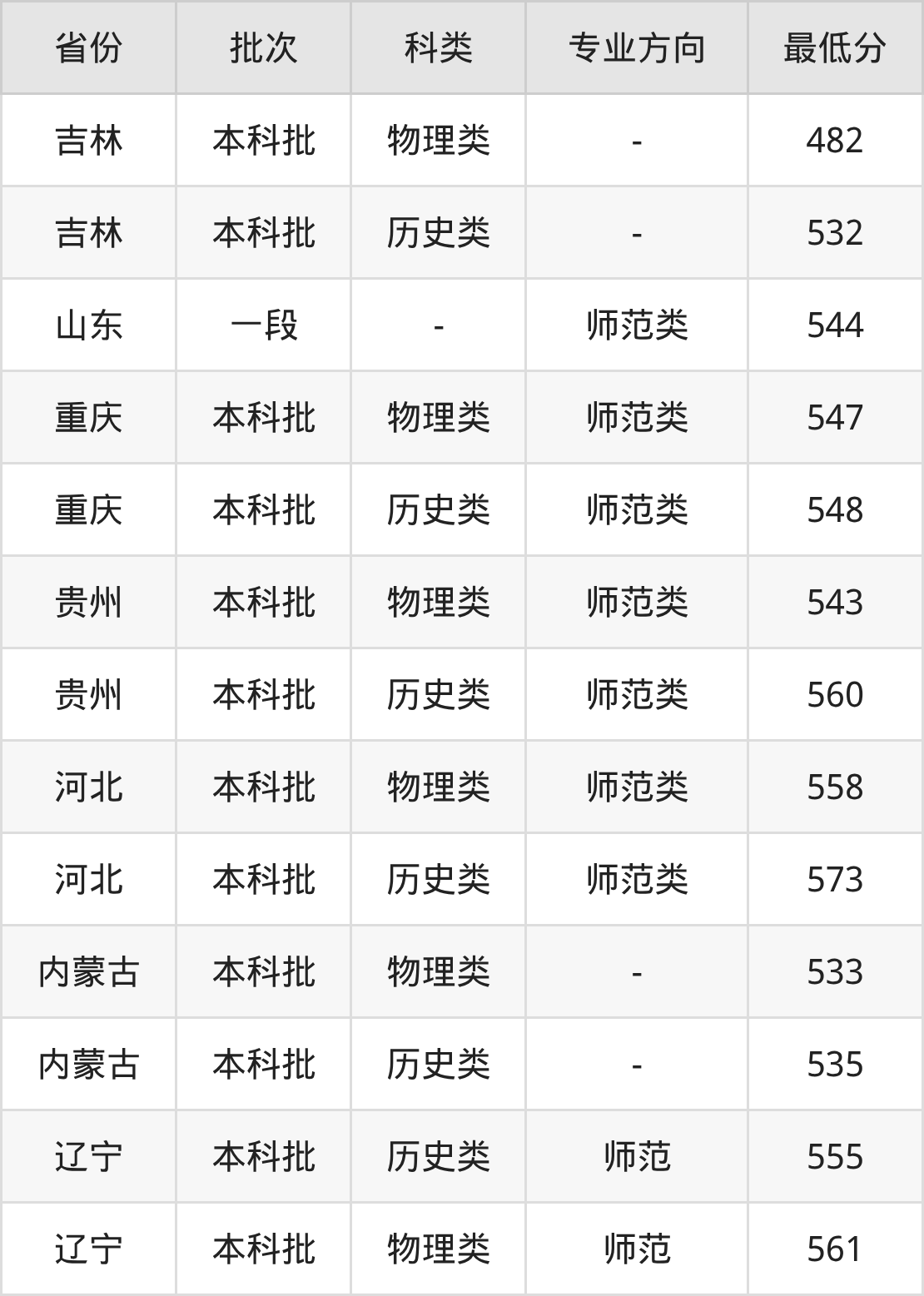 历史类555分(师范、位次6368名),物理类561分(师范、位次28020名);