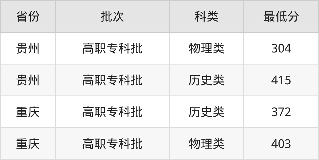 1、贵州省(高职专科批)