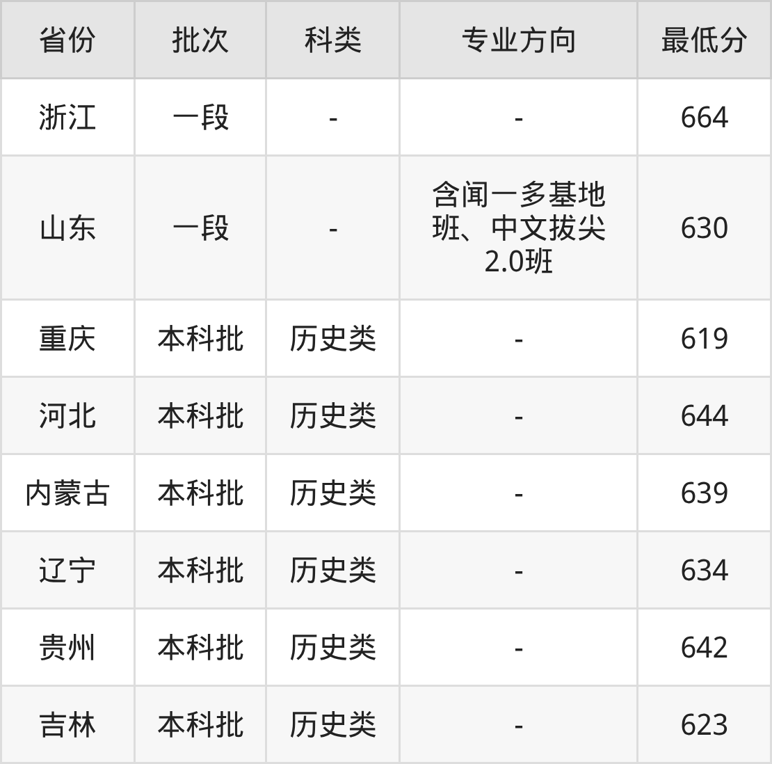 山东大学中国语言文学类专业录取分数线2025各省汇总显示,省内招生最低分为630分,省外招生最低分为重庆619分、贵州642分、河北644分、内蒙古639分等。更多专业分数详情、选科要求、专业简介等均可在正文查阅。