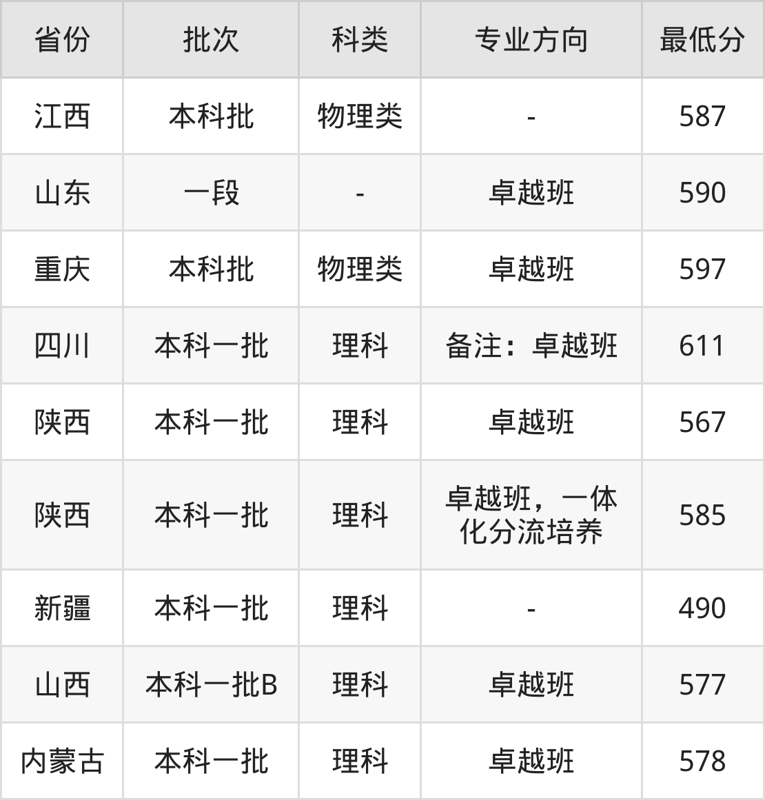 | 本科一批 | 理科 | 卓越班 | 567 | 17101 |