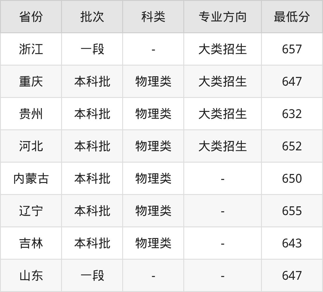物理类647分(大类招生、位次1994名);