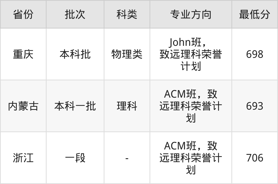 706分(ACM班,致远理科荣誉计划、位次90名)。