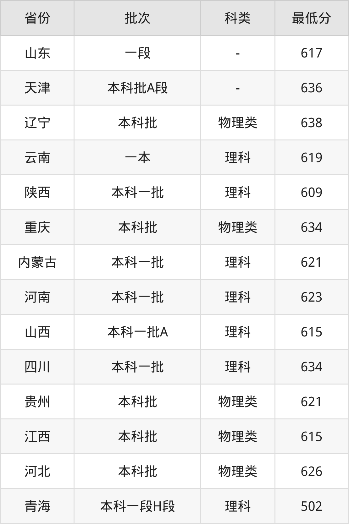 | 本科一批 | 理科 | 634 | 9316 |