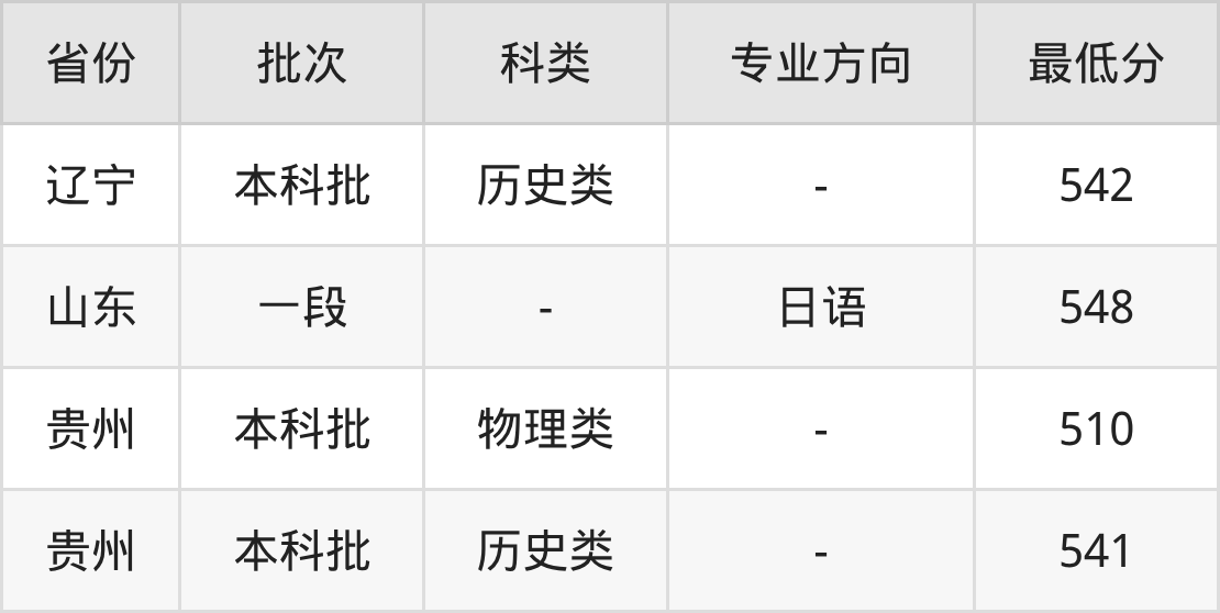 江苏师范大学日语专业录取分数线2025各省汇总显示,省外招生最低分为贵州510分、辽宁542分、山东548分。更多专业分数详情、选科要求、专业简介等均可在正文查阅。