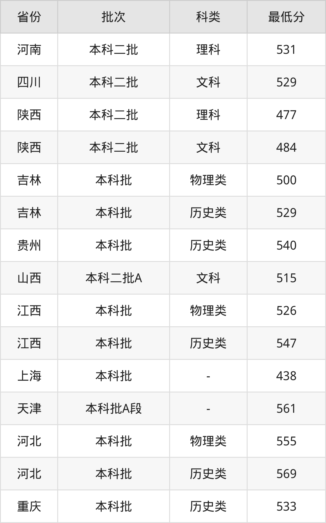 2024年河北工程大学会计学专业在省外招生分数线各不相同,具体如下: