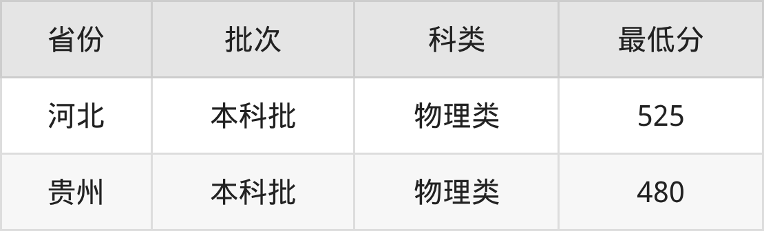 | 批次 | 科类 | 最低分 | 位次 |