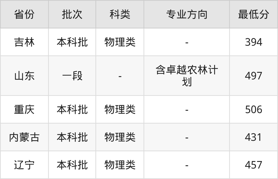 2025年内蒙古农业大学动物科学专业在自治区外招生分数线各不相同,具体如下: