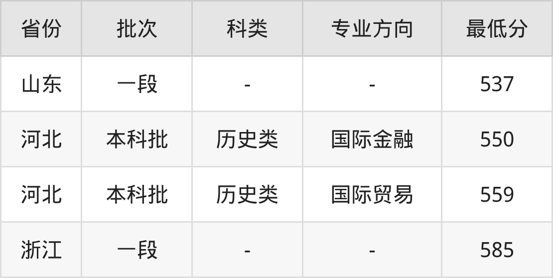 历史类550分(国际金融、位次22582名),历史类559分(国际贸易、位次18763名)。