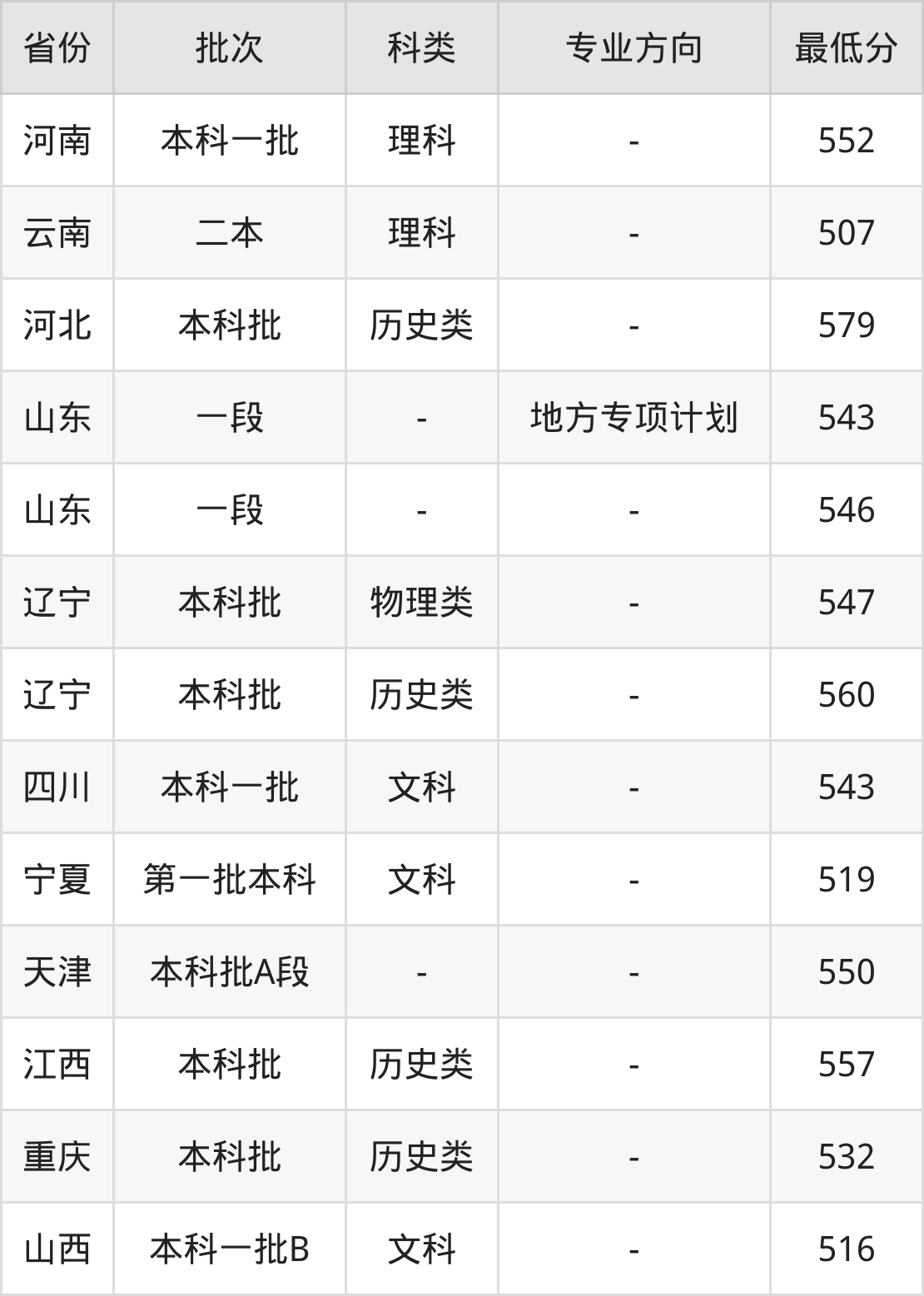 | 批次 | 专业方向 | 最低分 | 位次 |