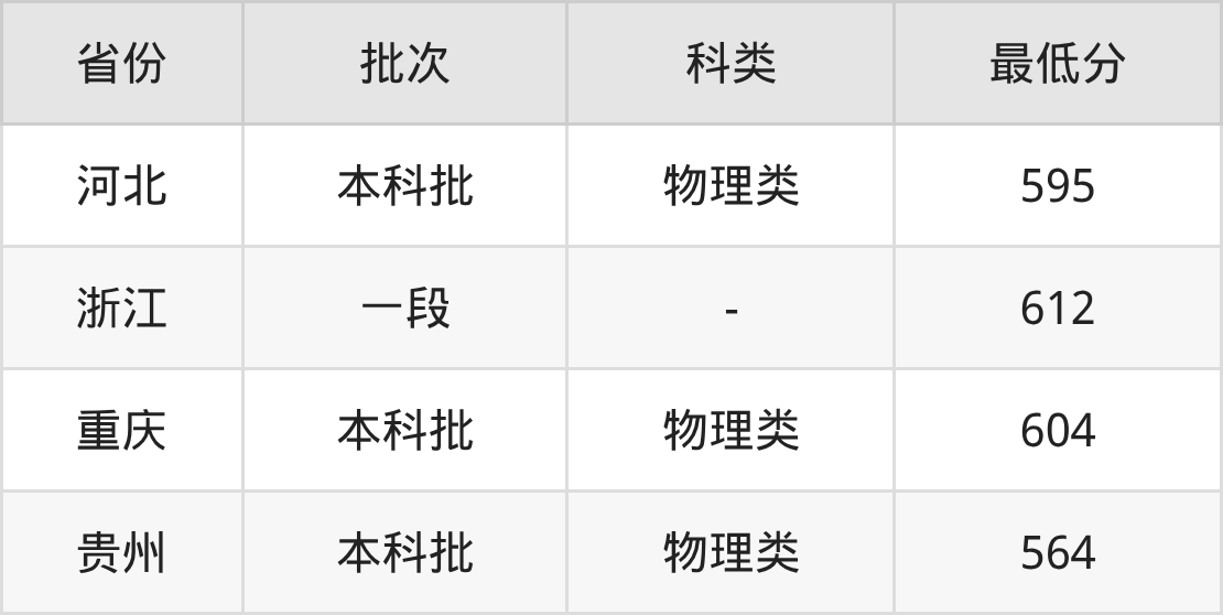 | 批次 | 科类 | 最低分 | 位次 |