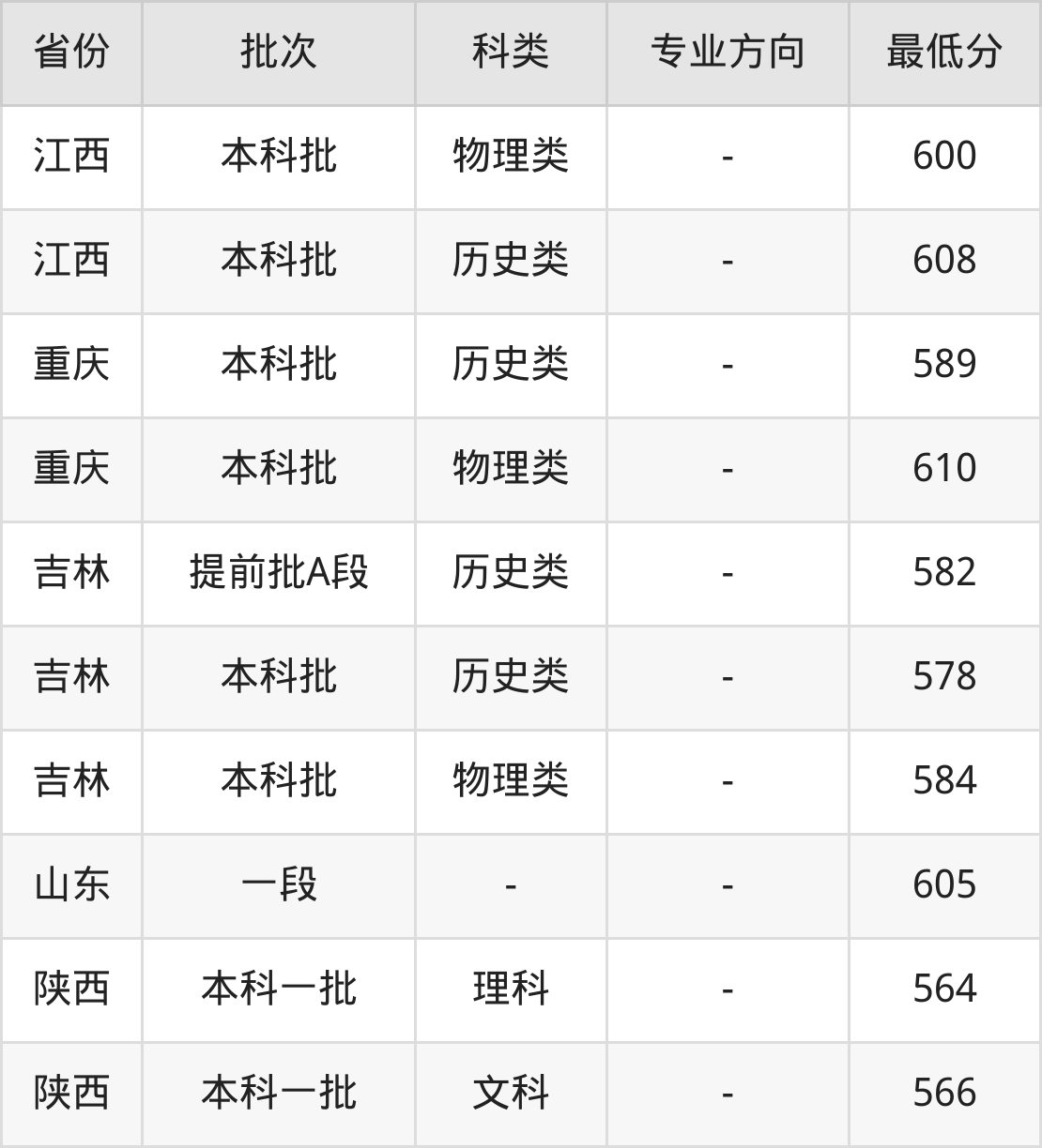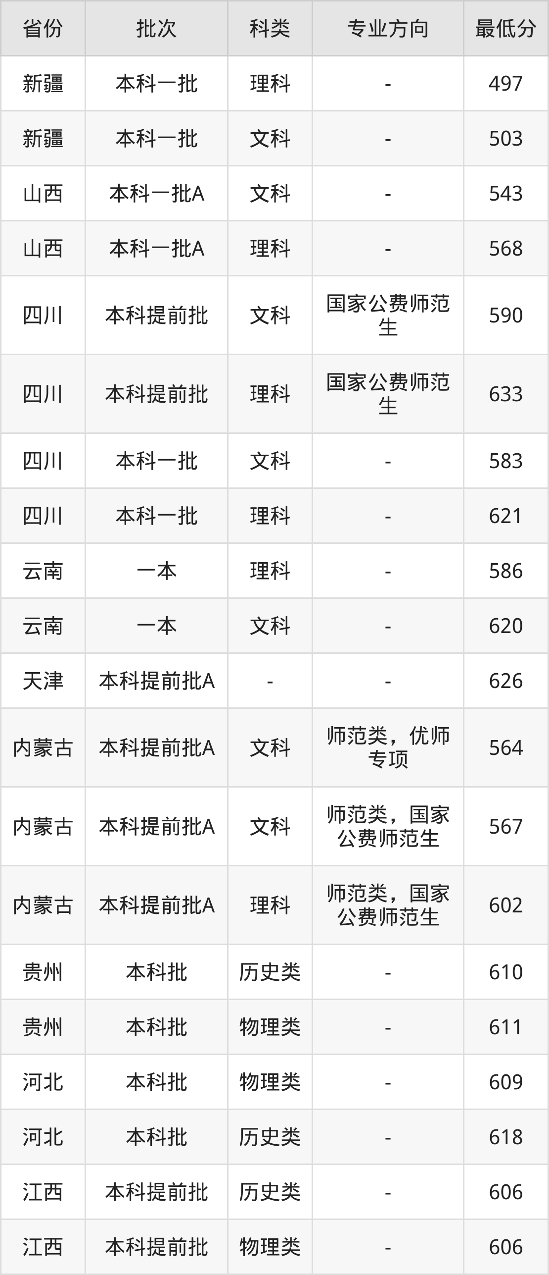 | 批次 | 科类 | 最低分 | 位次 |