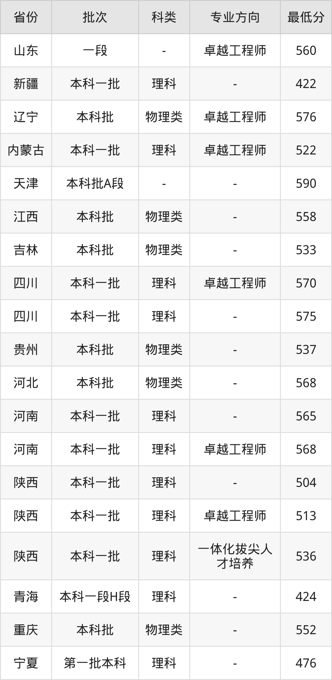 | 本科一批 | 理科 | 卓越工程师 | 513 | 38406 |